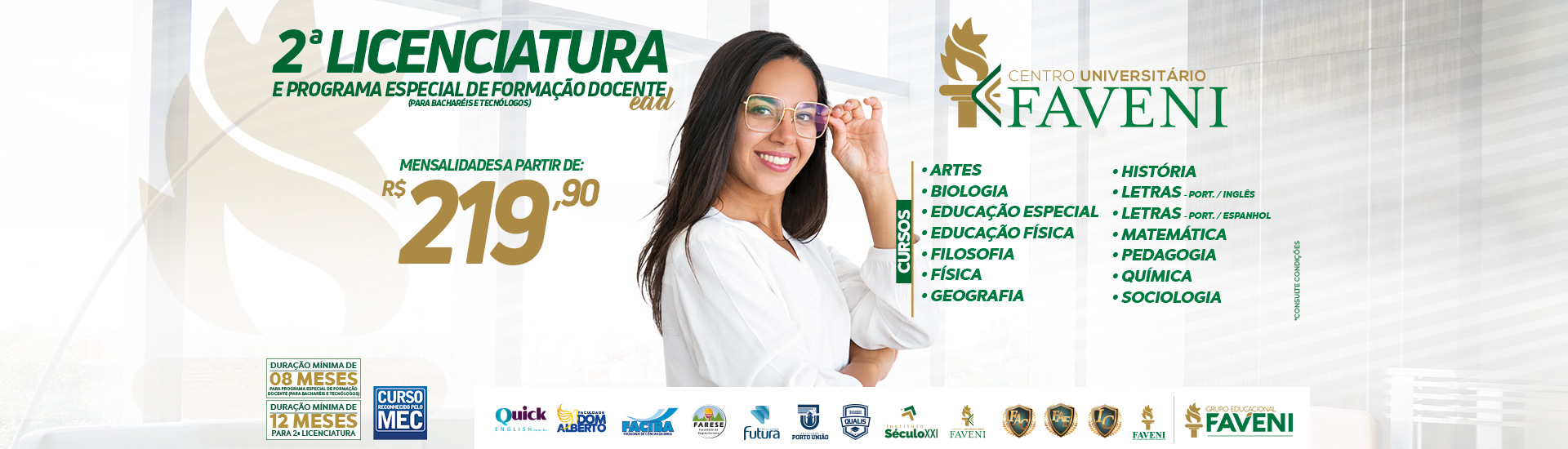 O GRUPO EDUCACIONAL FAVENI é dirigido pelo Empreendedor e Educador Leandro Xavier Timóteo. Com uma vasta experiência, atuando no segmento educacional com mais de 200 mil alunos e 100 polos espalhados em todo o Brasil. Ofertando ensino de qualidade reconhecido pelo Ministério da Educação (MEC).